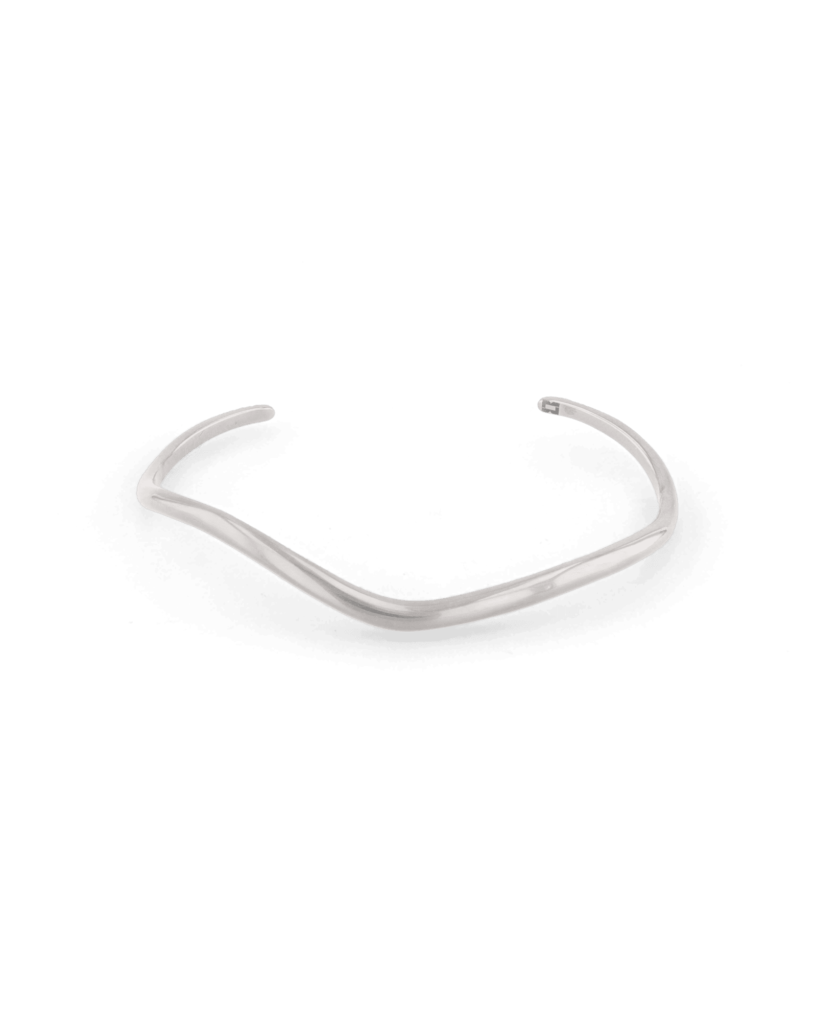Sway Thin Silver Cuff Bracelet by Lavana, slim V-shaped open cuff