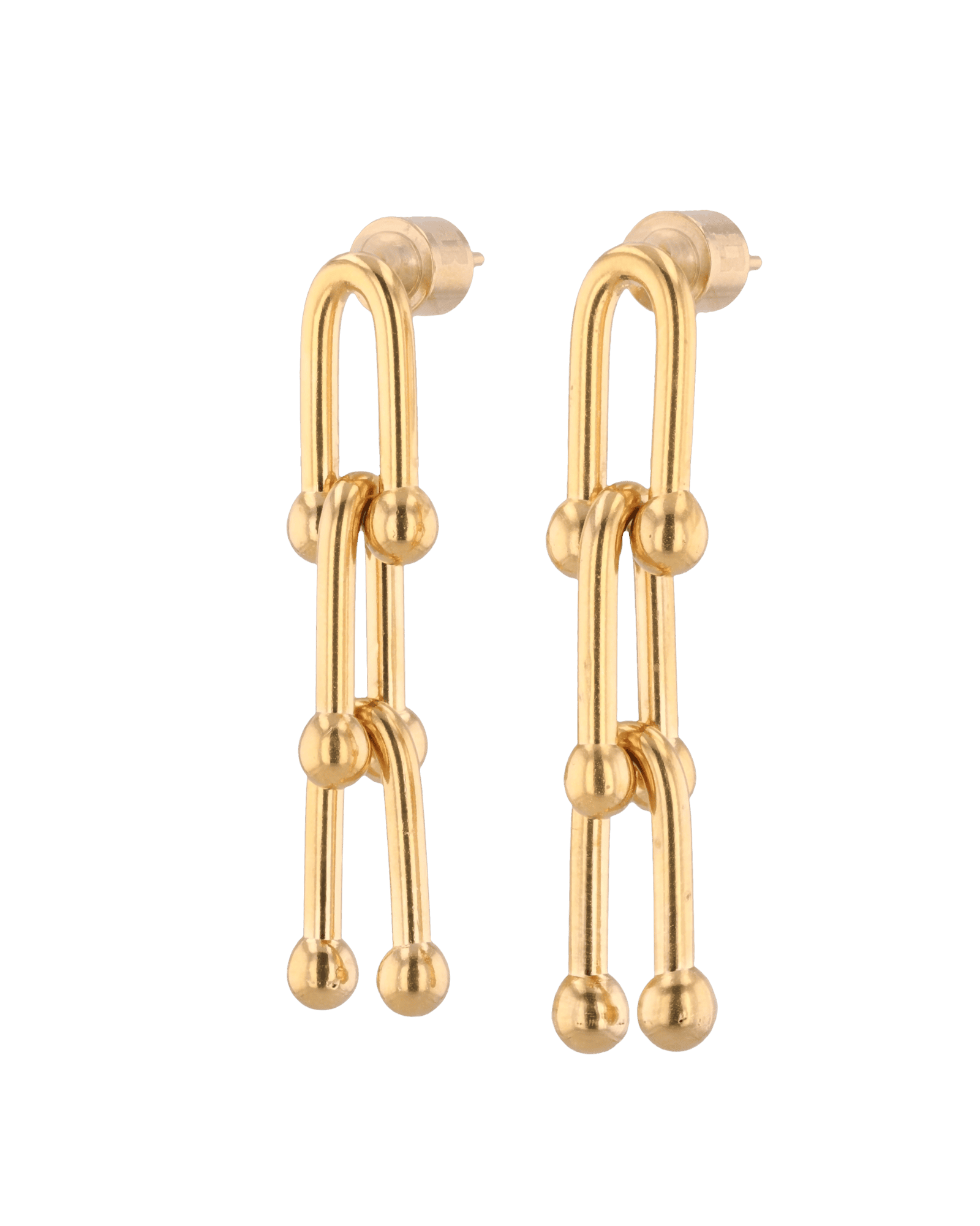 Luxe Link Gold Earrings by LAVANA, elongated link drops with polished spheres
