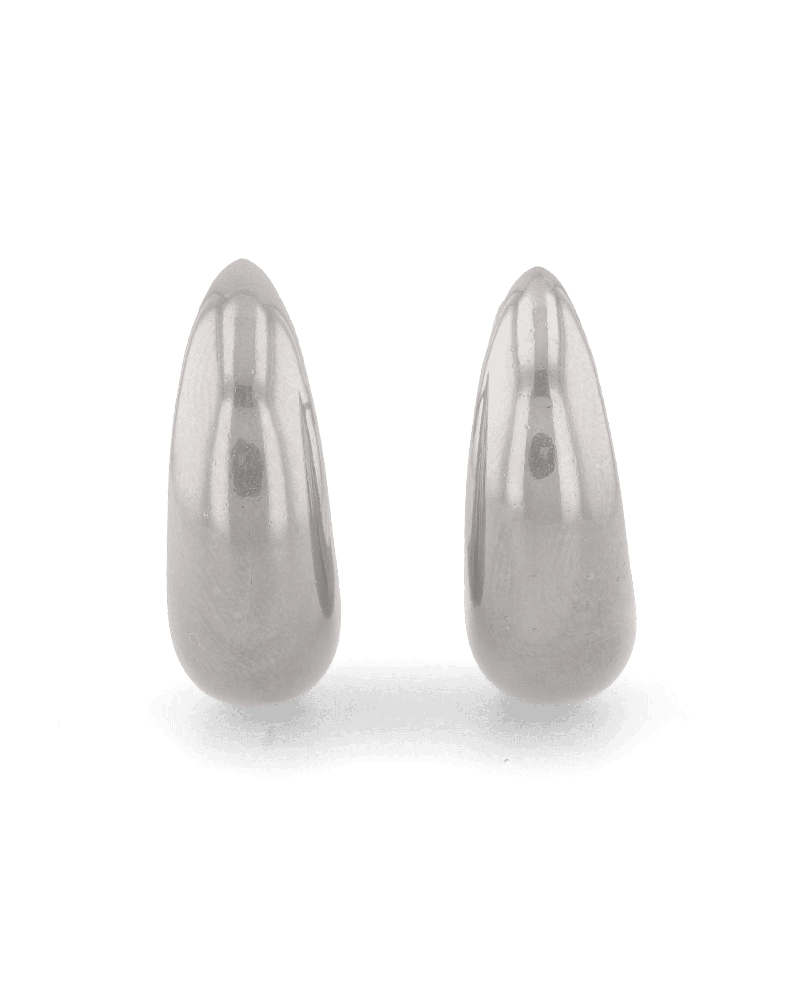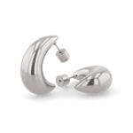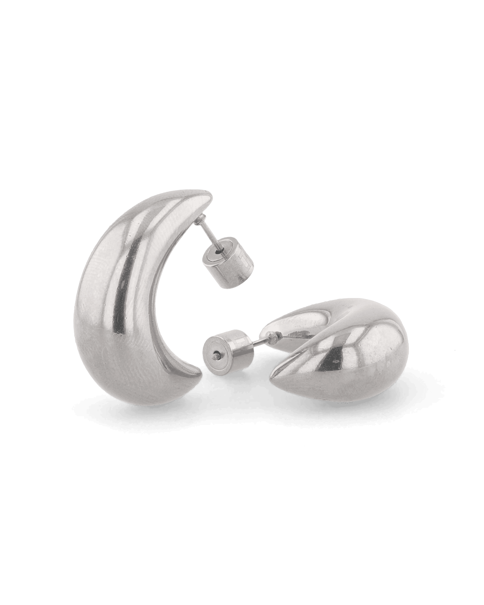 A large crescent stud with smooth dome volume and cool gloss. Clean curve, strong shine, a sleek way to go big without bulk.