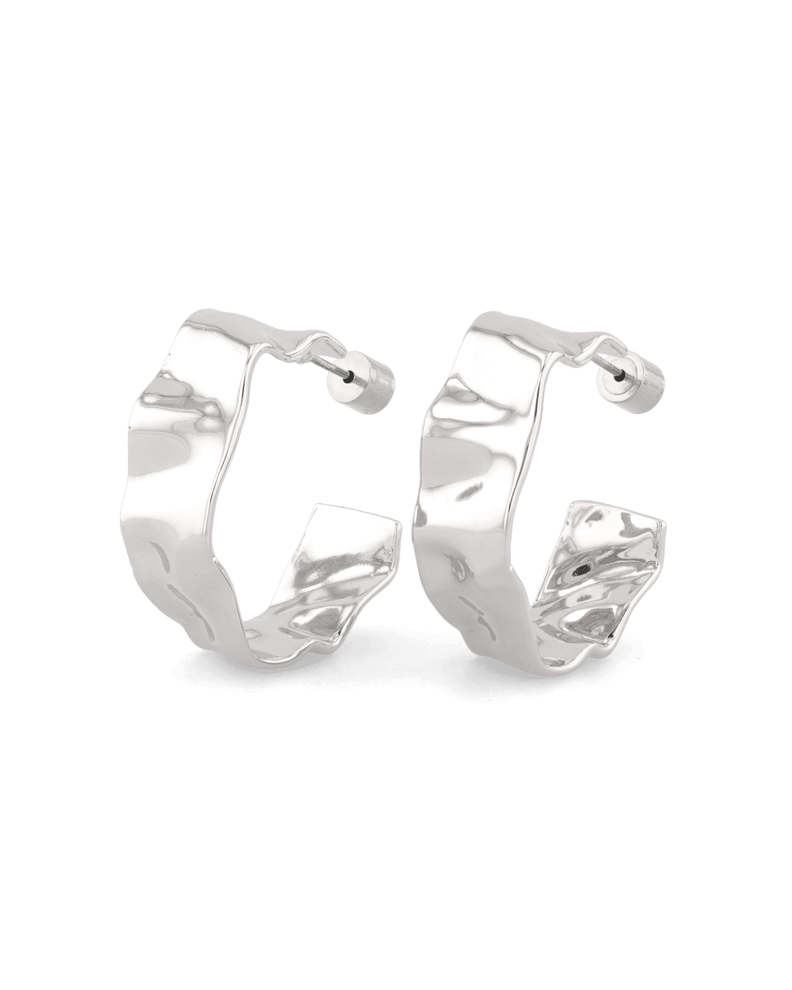 Sirocco silver chunky hoop earrings by Lavana, with fluid sculptural texture