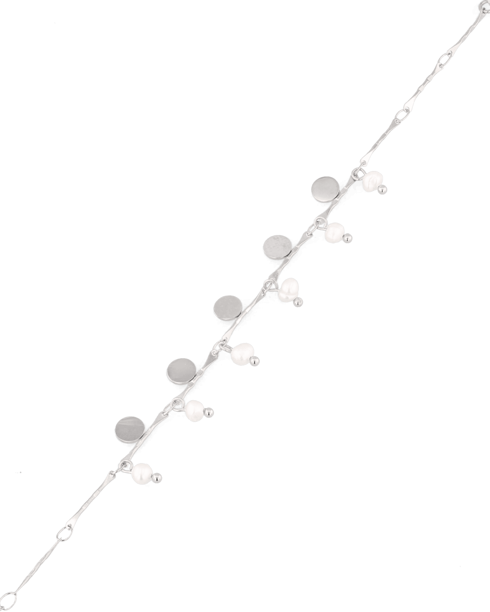Dancing Discs Tango Silver Bracelet by Lavana, chain bracelet with discs and freshwater pearl charms
