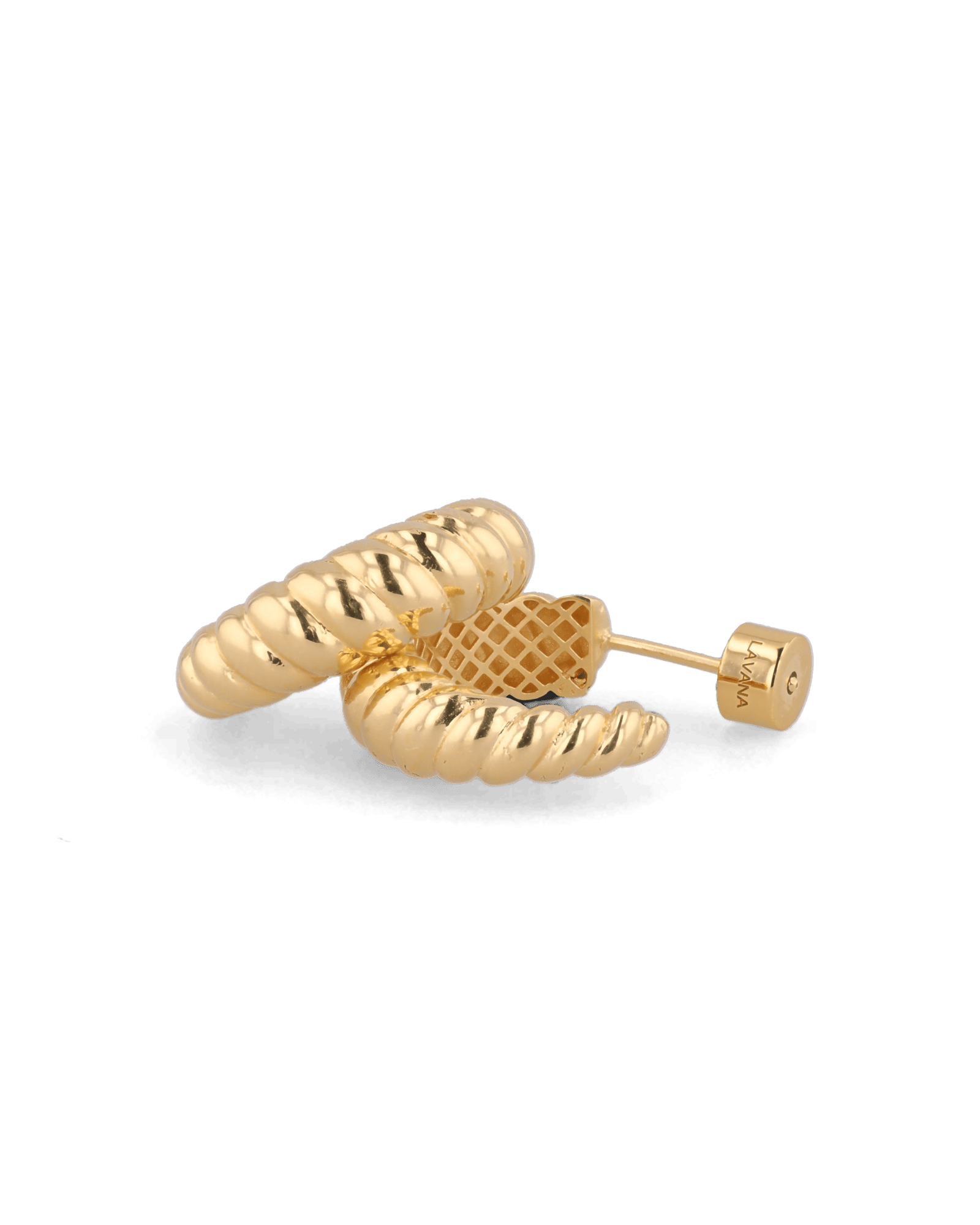 Everyday-friendly gold-plated sterling silver. To maintain colour and shine, put jewellery on last after skincare and scent, wipe with a silver polishing cloth after wear, and store clean and dry in a soft pouch. Avoid water exposure and vigorous workouts.